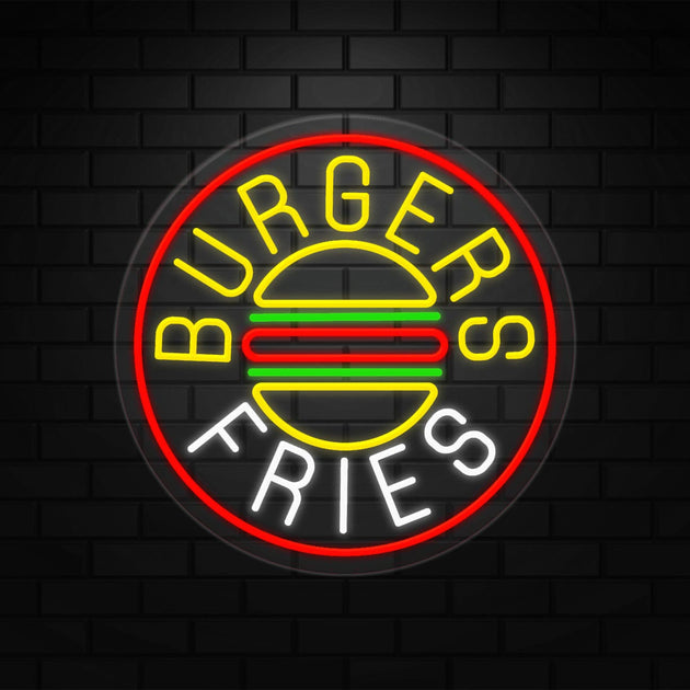 Burgers Fries Sign for Business Displays | LED Flex Neon | 26"W x 26"H x 1"D