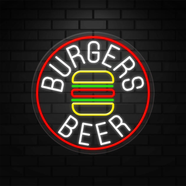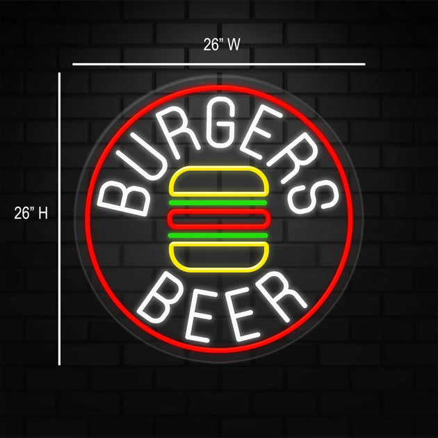 Burgers Beer Neon Sign for Retail Displays | LED Flex Neon | 26"W x 26"H x 1"D