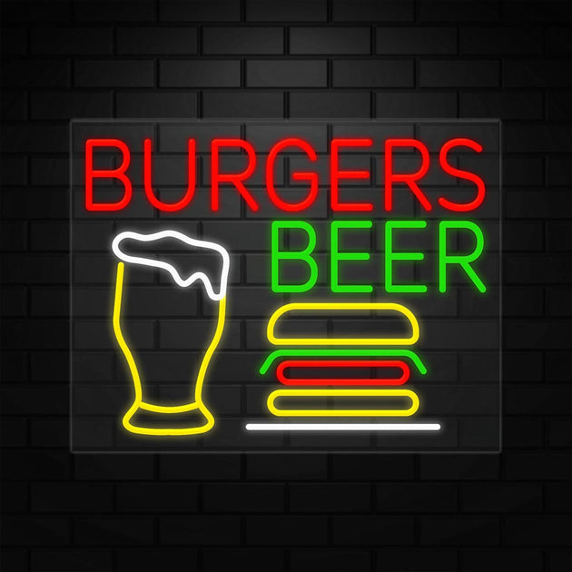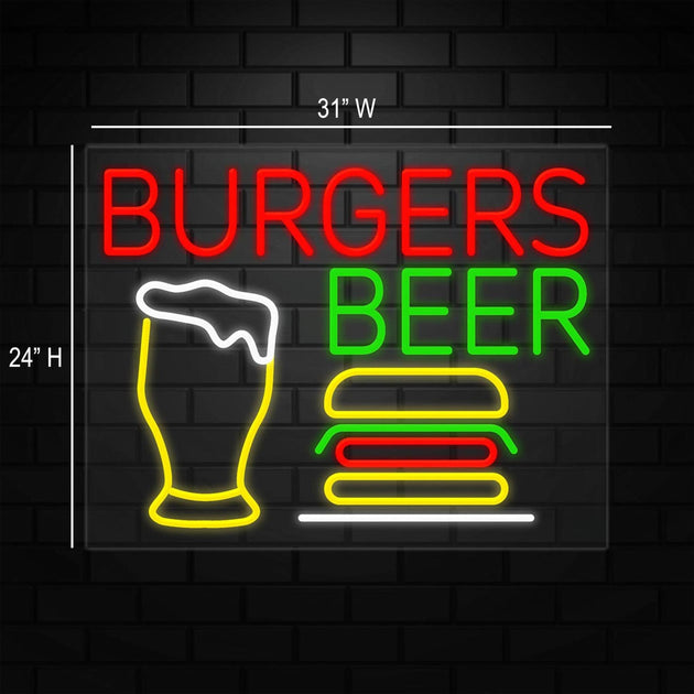Burgers Beer Neon Sign for Retail Displays | LED Flex Neon | 31"W x 24"H x 1"D