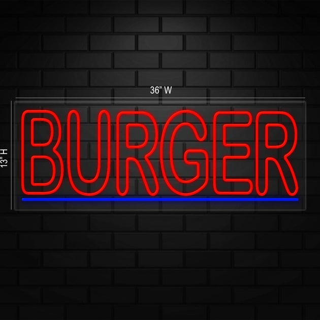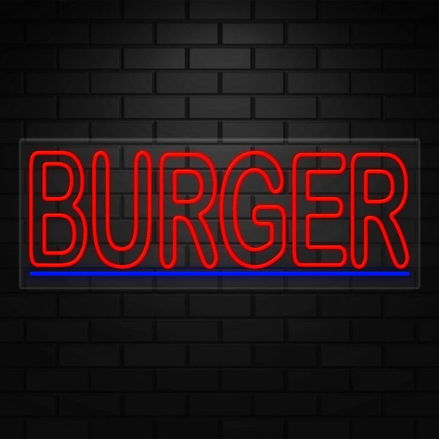 Burgers Neon Sign for Retail Displays | LED Flex Neon | 37"W x 20"H x 1"D