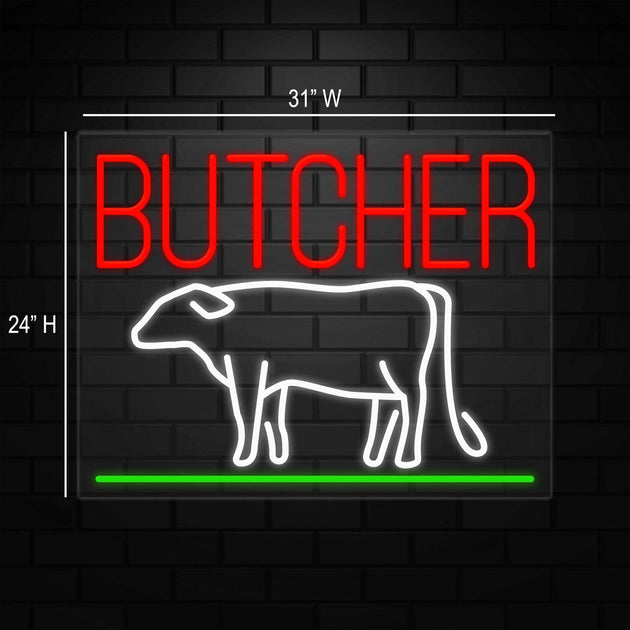 Butcher Neon Sign for Retail Displays | LED Flex Neon | 31"W x 24"H x 1"D