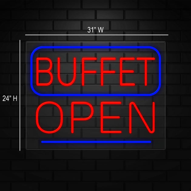 Buffet Open Neon Sign for Retail Displays | LED Flex Neon | 31"W x 24"H x 1"D