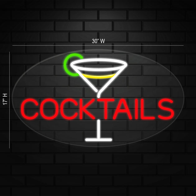 Cocktails Sign for Business Displays | LED Flex Neon | 30"W x 17"H x 1"D