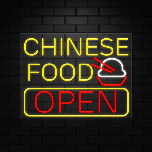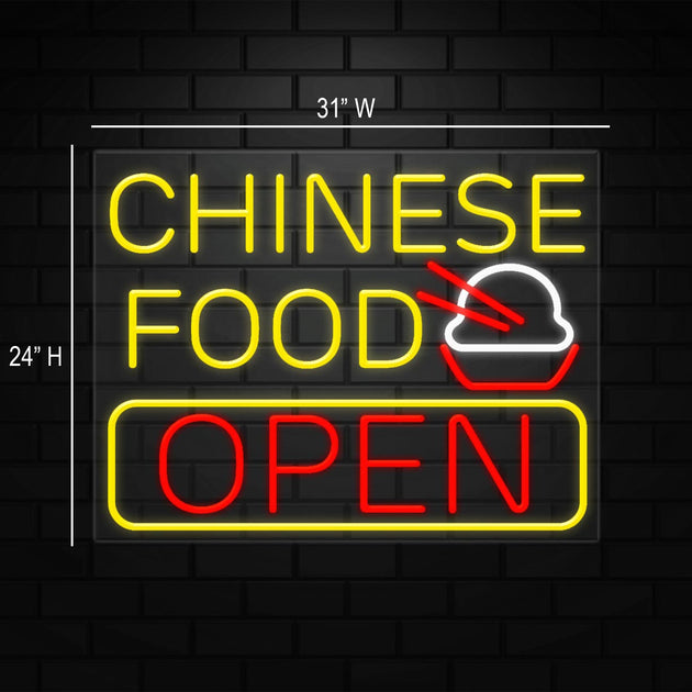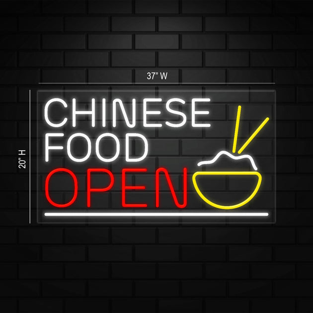 Chinese Food Open Sign for Retail Displays | LED Flex Neon | 37"W x 20"H x 1"D