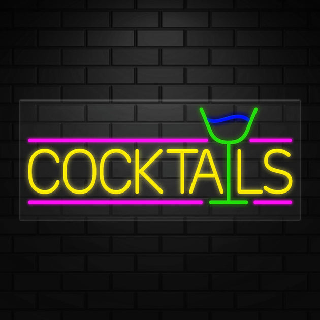 Cocktails Neon Sign for Retail Displays | LED Flex Neon | 30"W x 12"H x 1"D