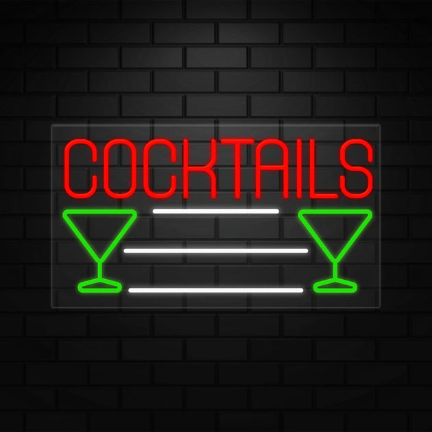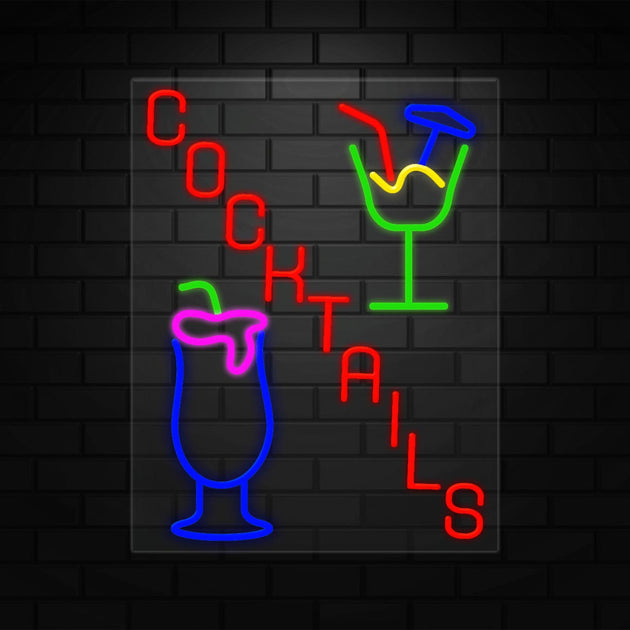 Cocktails Sign for Business Displays | LED Flex Neon | 24"W x 31"H x 1"D