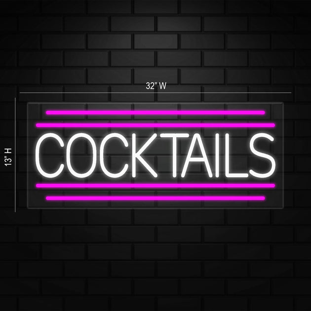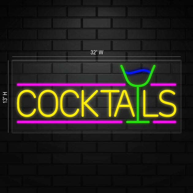 Cocktails Sign for Business Displays | LED Flex Neon | 32"W x 13"H x 1"D