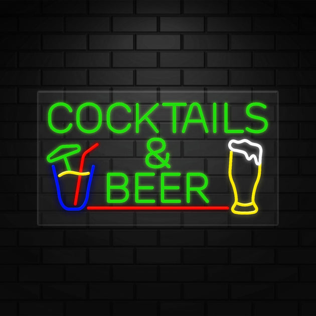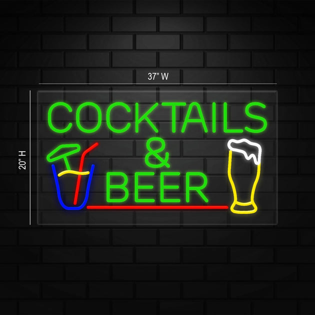 Cocktails & Beer Sign for Business Displays | LED Flex Neon | 37"W x 20"H x 1"D