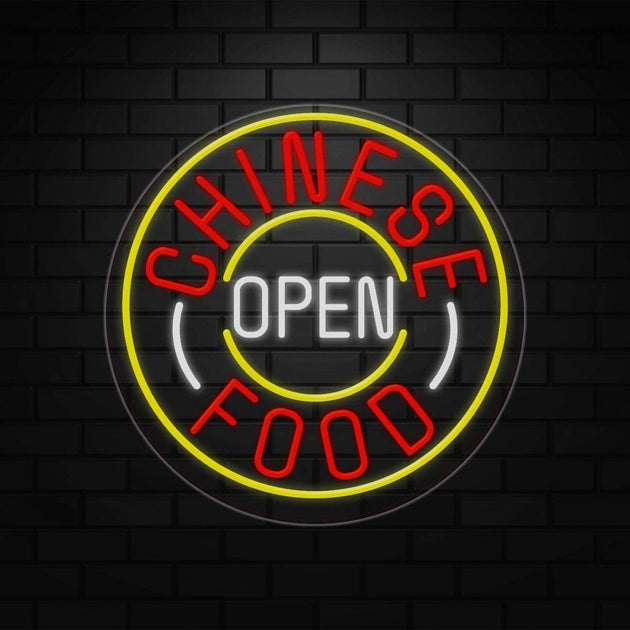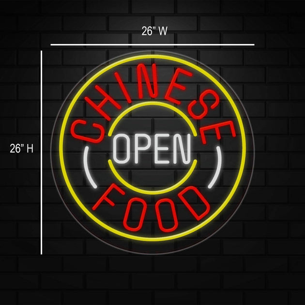 Chinese Food Open Sign for Retail Displays | LED Flex Neon | 26"W x 26"H x 1"D