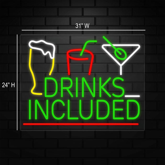Drinks Included Neon Sign for Retail Displays | LED Flex Neon |31"W x 24"H x 1"D