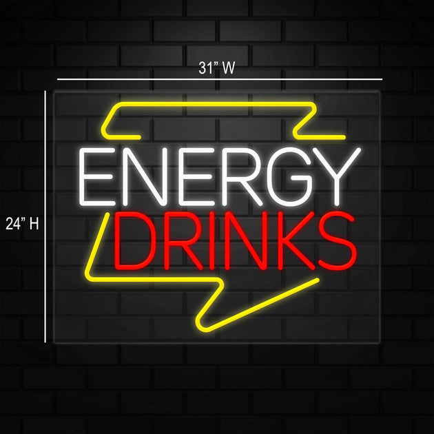 Energy Drinks Neon Sign for Retail Displays | LED Flex Neon | 31"W x 24"H x 1"D