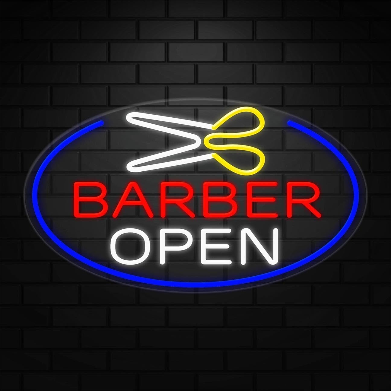 Barber Open Neon Sign for Retail Displays | LED Flex Neon | 30"W x 17"H x 1"D