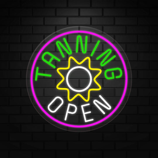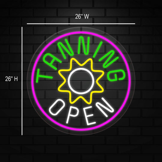 Tanning Open Sign for Business Displays | LED Flex Neon | 26"W x 26"H x 1"D