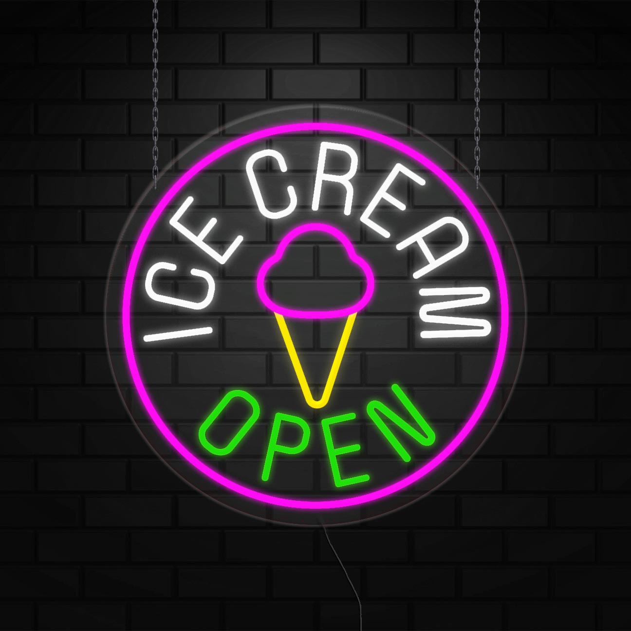 Ice Cream Open Sign for Business Displays | LED Flex Neon | 26"W x 26"H x 1"D