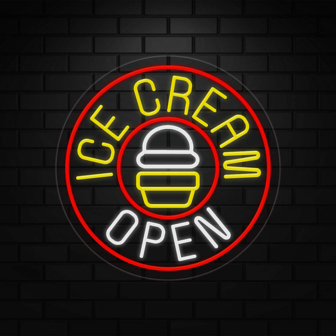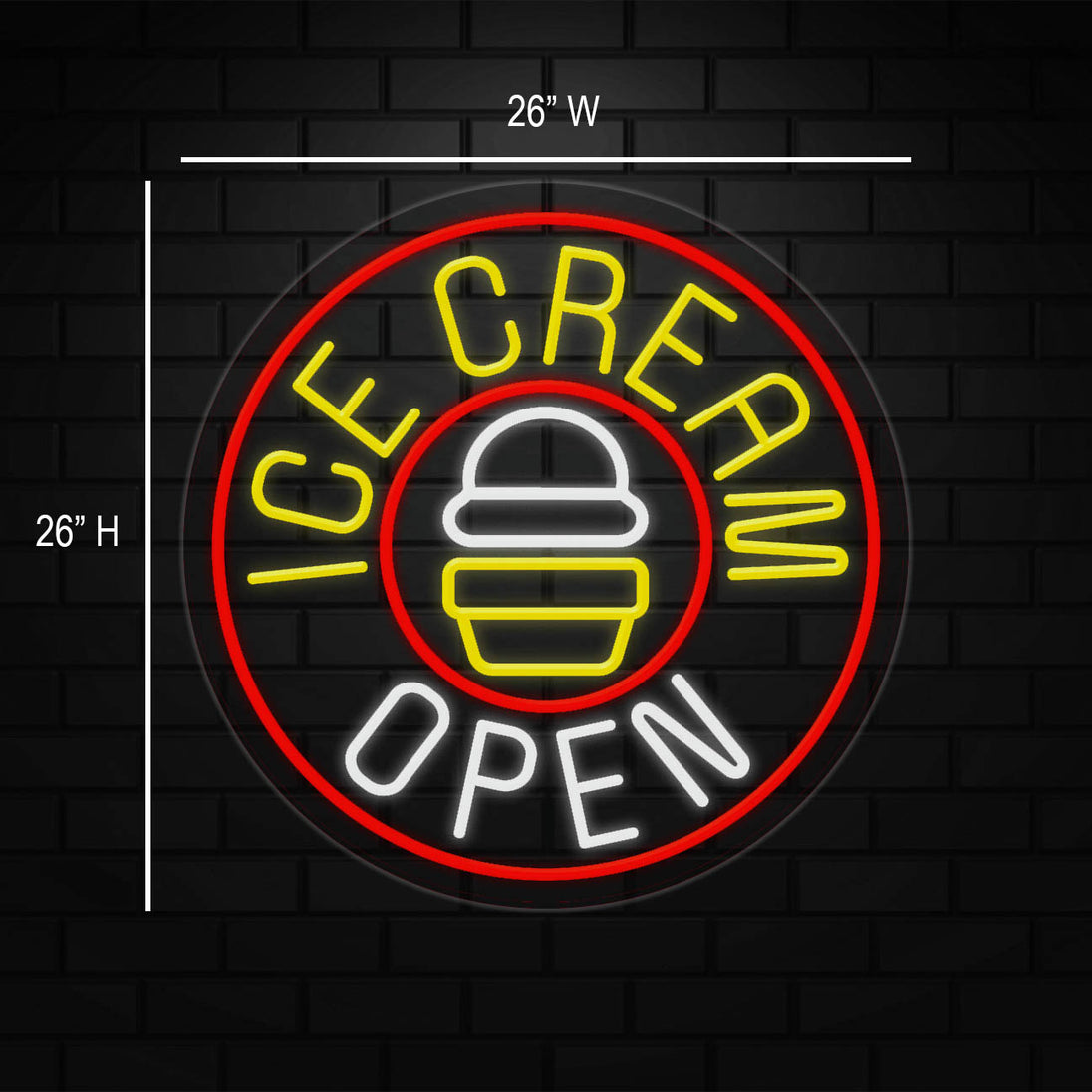 Ice Cream Open Sign for Business Displays | LED Flex Neon | 26"W x 26"H x 1"D
