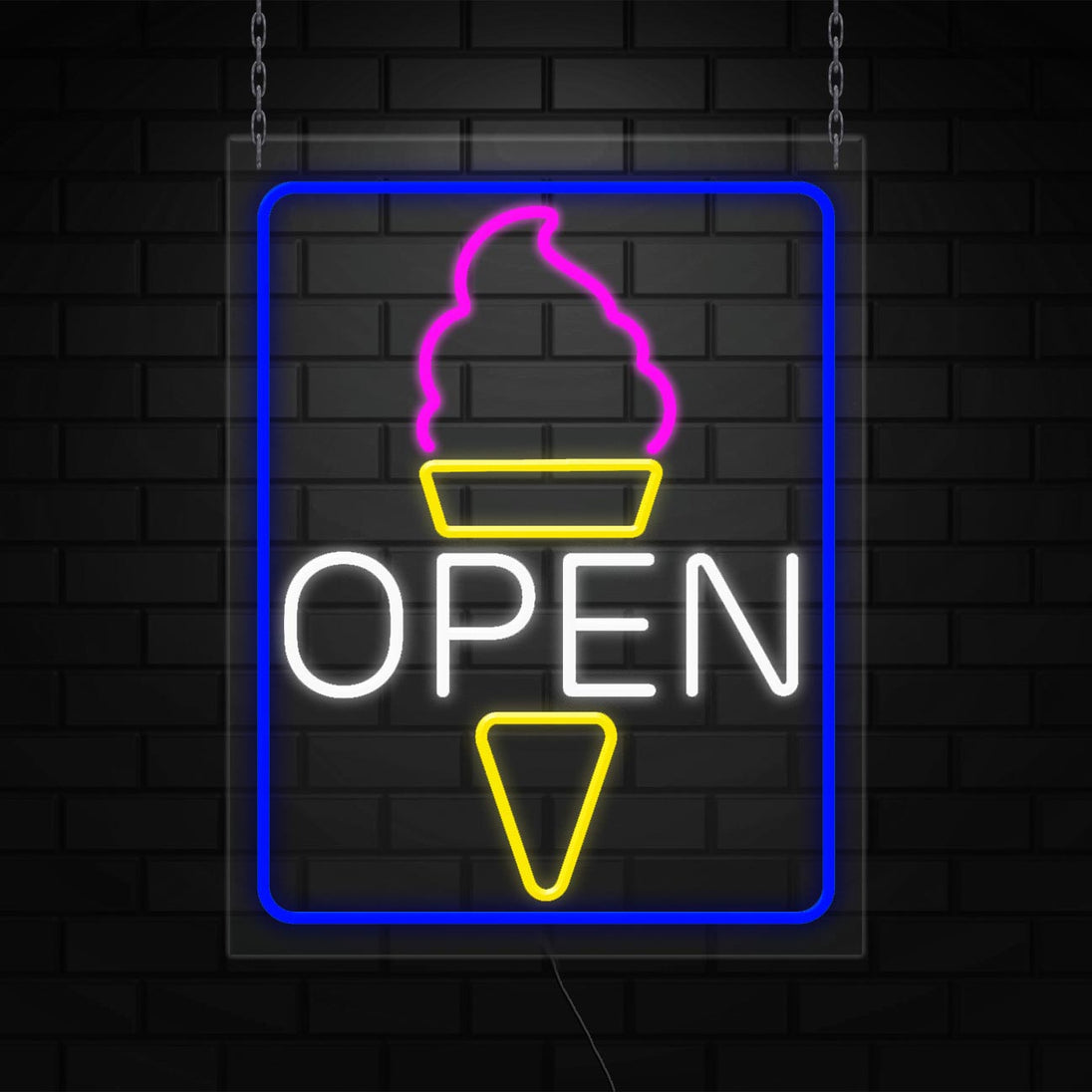 Illuminate your brand and captivate attention with vibrant, modern neon signs designed to stand out day or night! Crafted from lightweight, durable LED flex neon, these ultra-bright signs are visible from over 500 feet away—even in direct sunlight. With minimal energy usage and a long-lasting lifespan of up to 100,000 hours, neon signs are a cost-effective and eco-friendly solution for eye-catching displays. Easy to install, safe to handle, and simple to relocate, they’re the perfect lighting upgrade for any storefront or interior space.