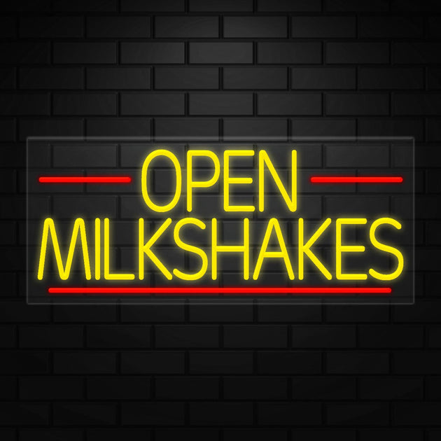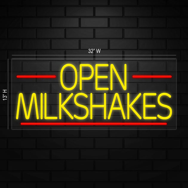Open Milkshakes Neon Sign for Retail Displays | LED Flex Neon | 36"W x 15"H x 1"D