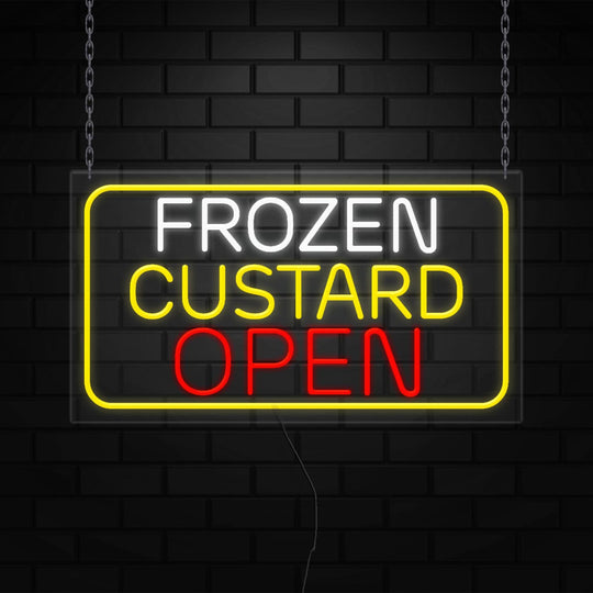 Frozen Custard Open Sign for Retail Display | LED Flex Neon | 37"W x 20"H x 1"D