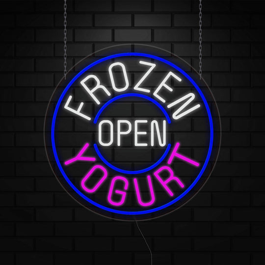 Frozen Yogurt Open Sign for Business Displays | LED Flex Neon |26"W x 26"H x 1"D