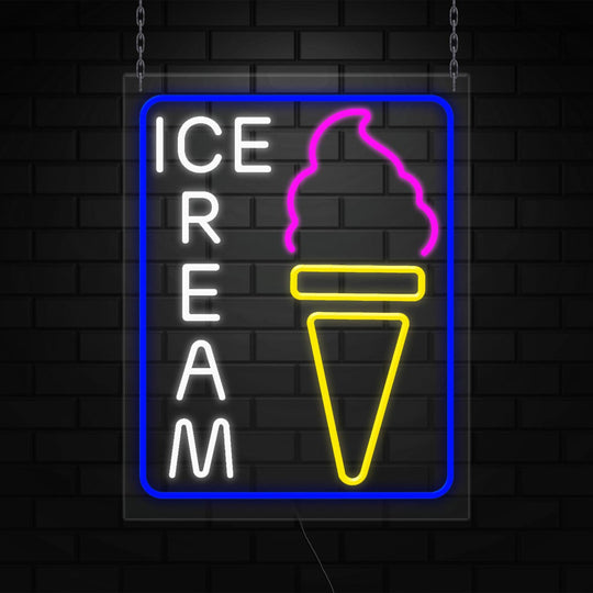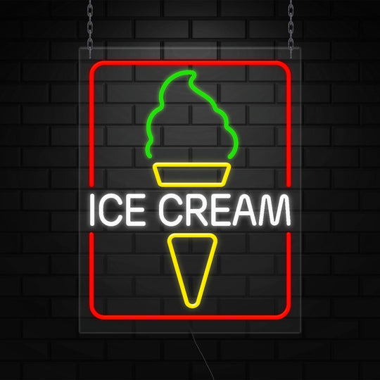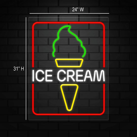 Ice Cream Sign for Business Displays | LED Flex Neon | 24"W x 31"H x 1"D
