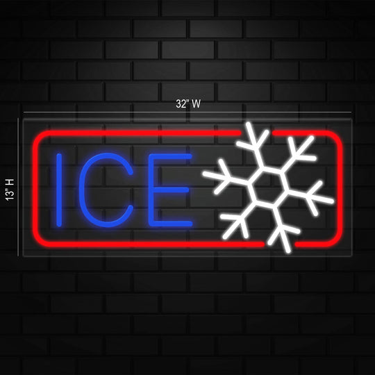 Ice Sign for Business Displays | LED Flex Neon | 32"W x 13"H x 1"D