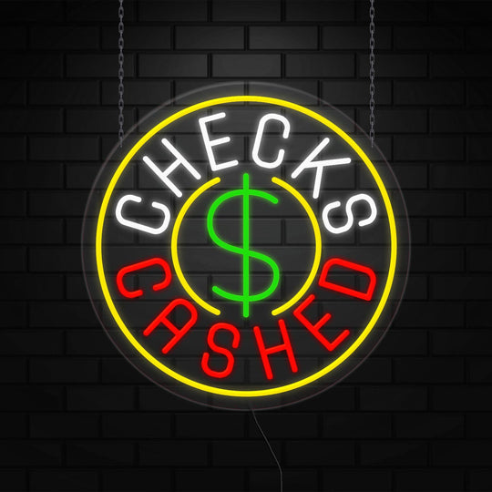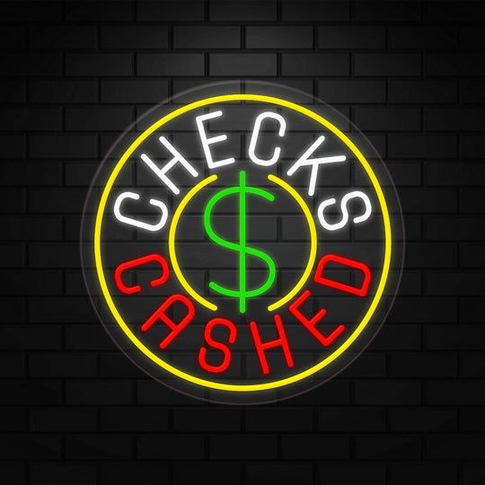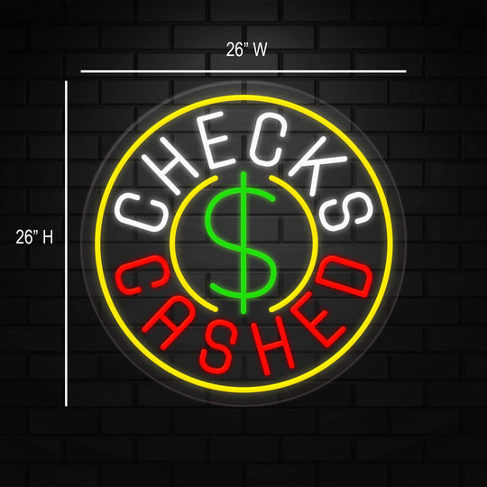 Checks Cashed Sign for Business Displays | LED Flex Neon | 26"W x 26"H x 1"D