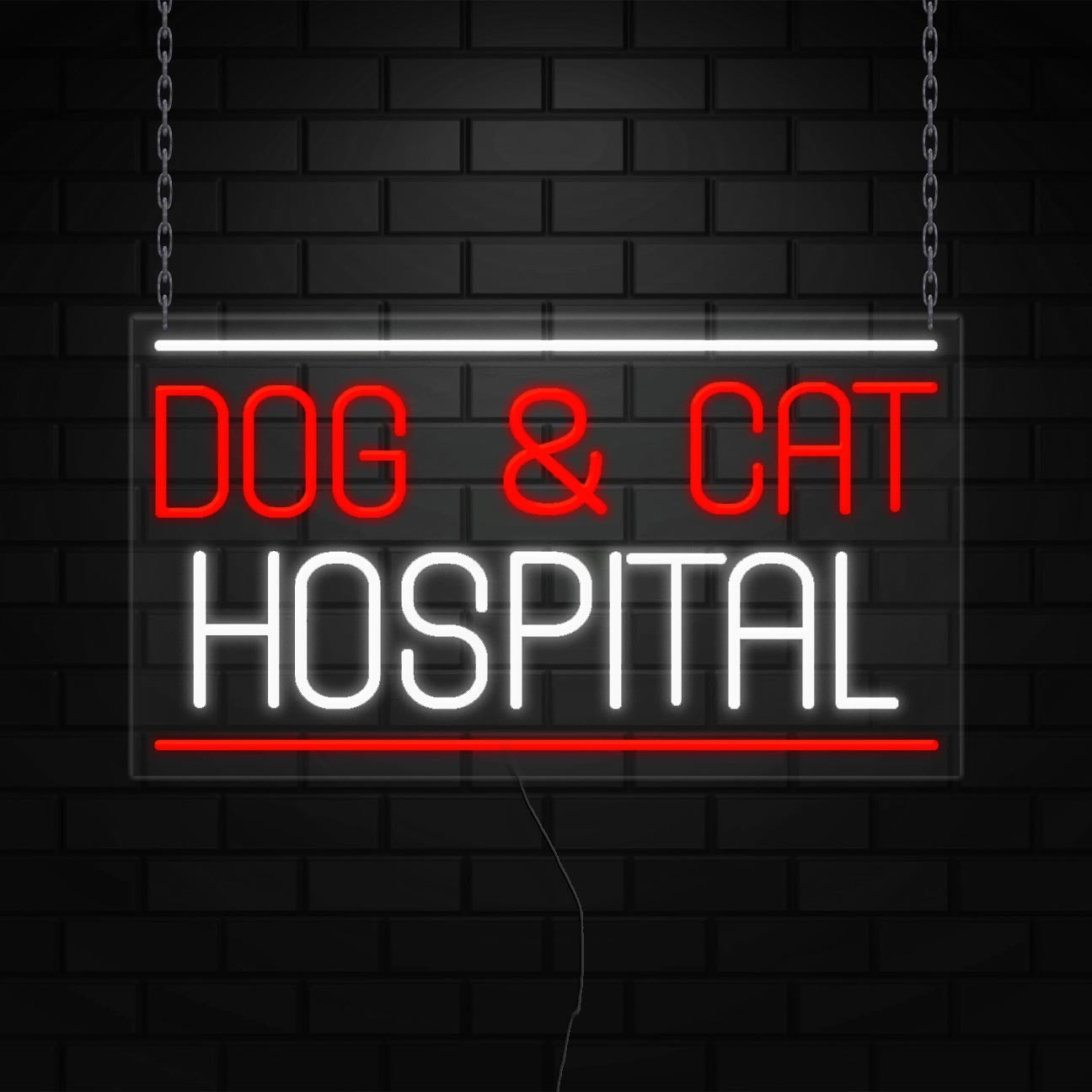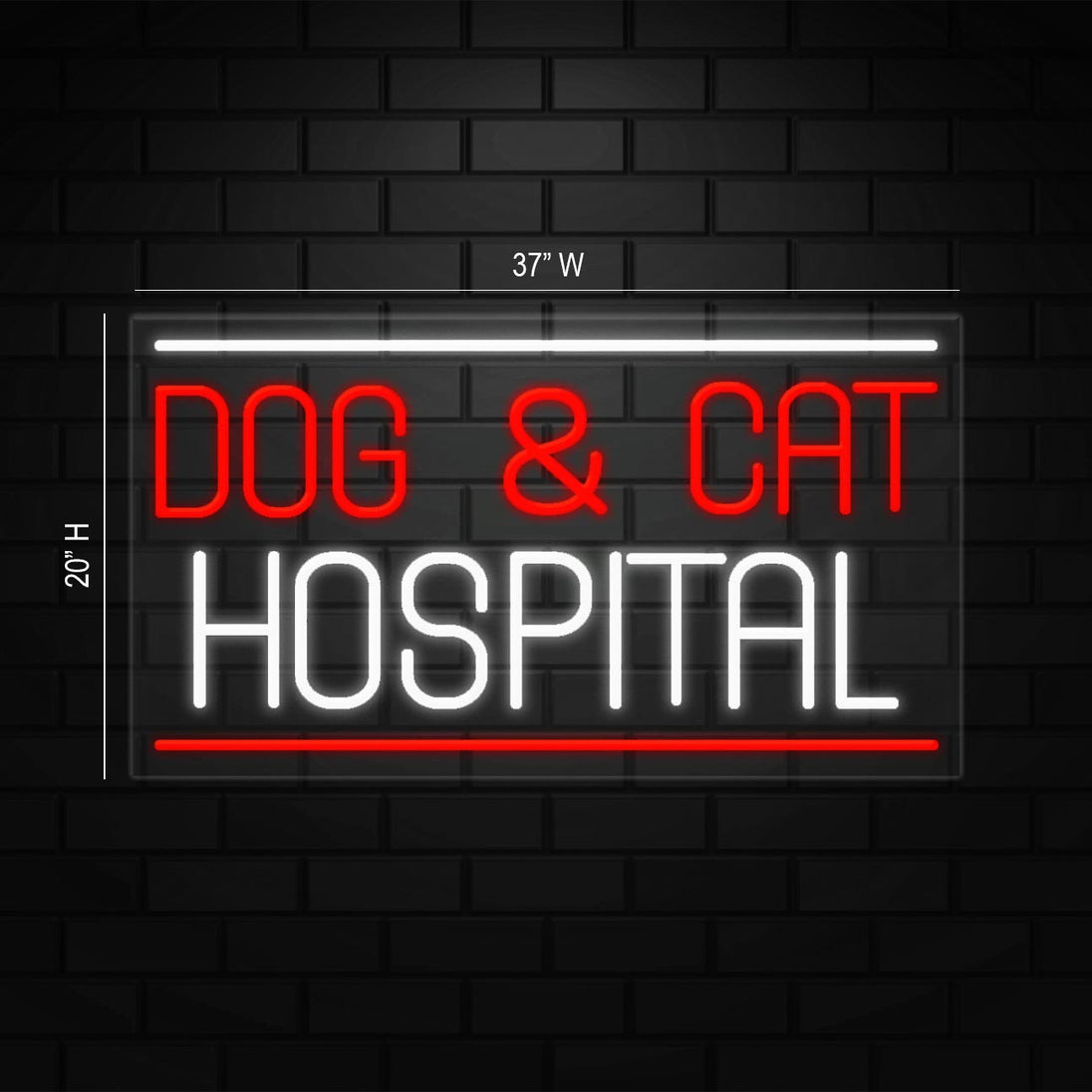Dog & Cat Hospital Sign for Business Display | LED Flex Neon | 37"W x 20"H x 1"D