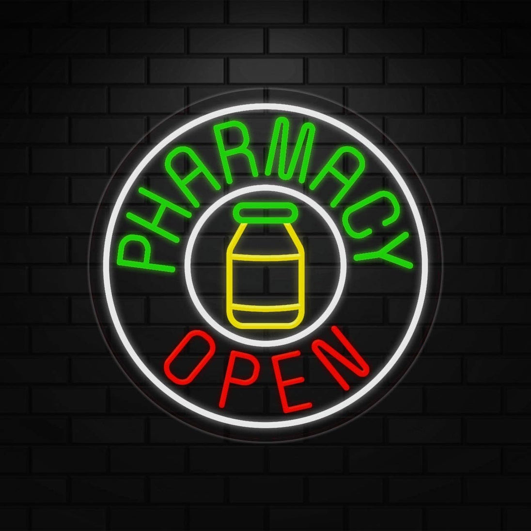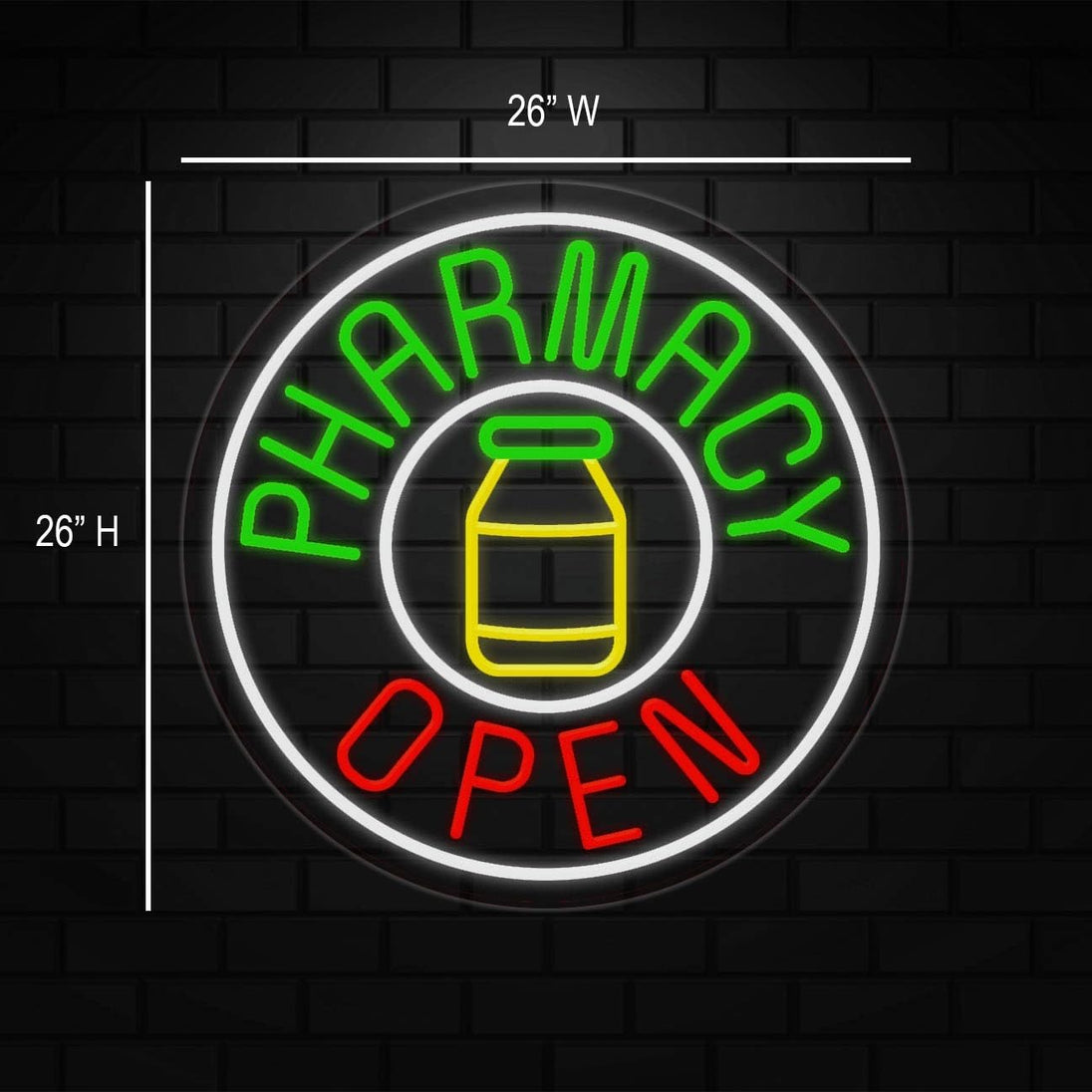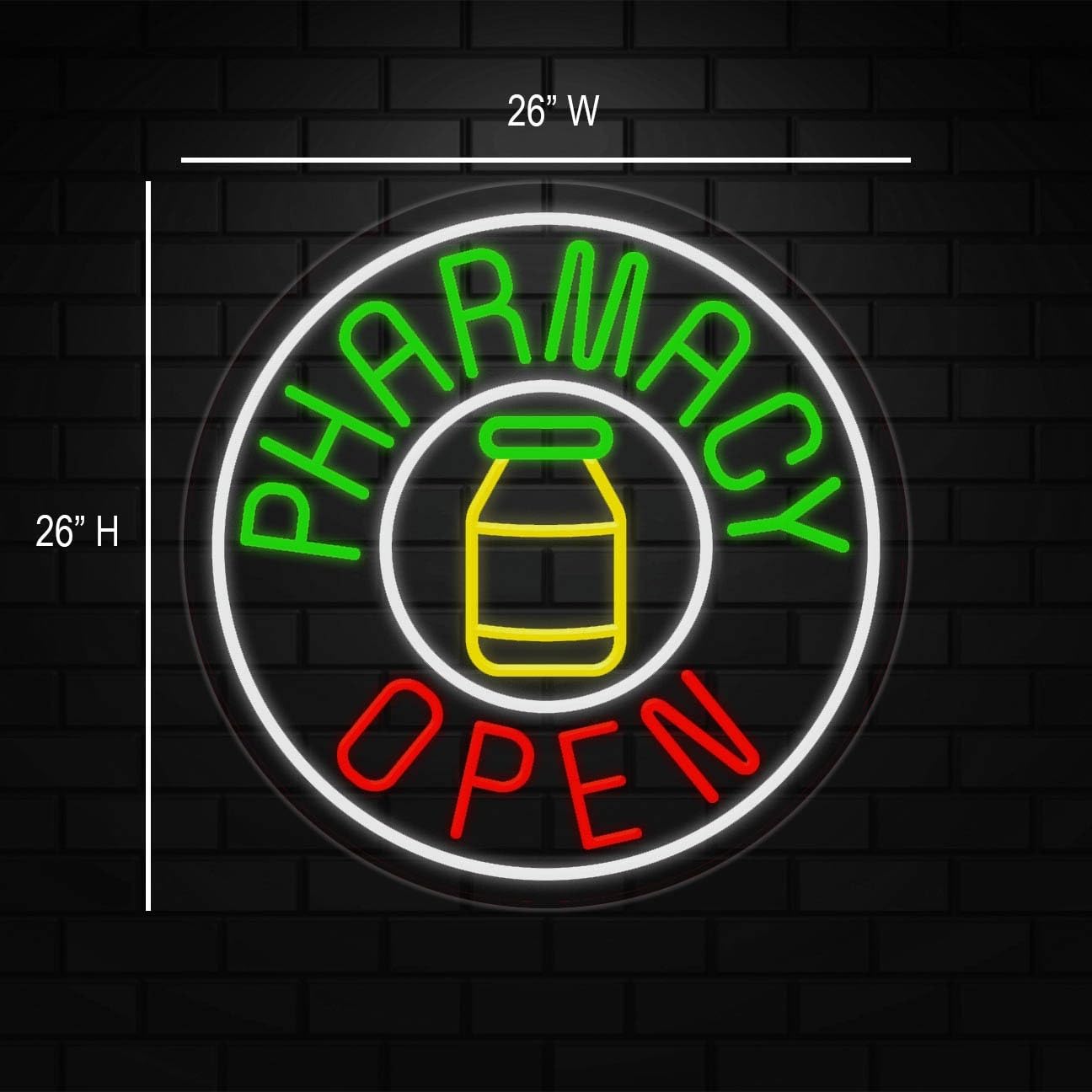 Pharmacy Open Neon Sign for Retail Displays | LED Flex Neon | 26"W x 26"H x 1"D