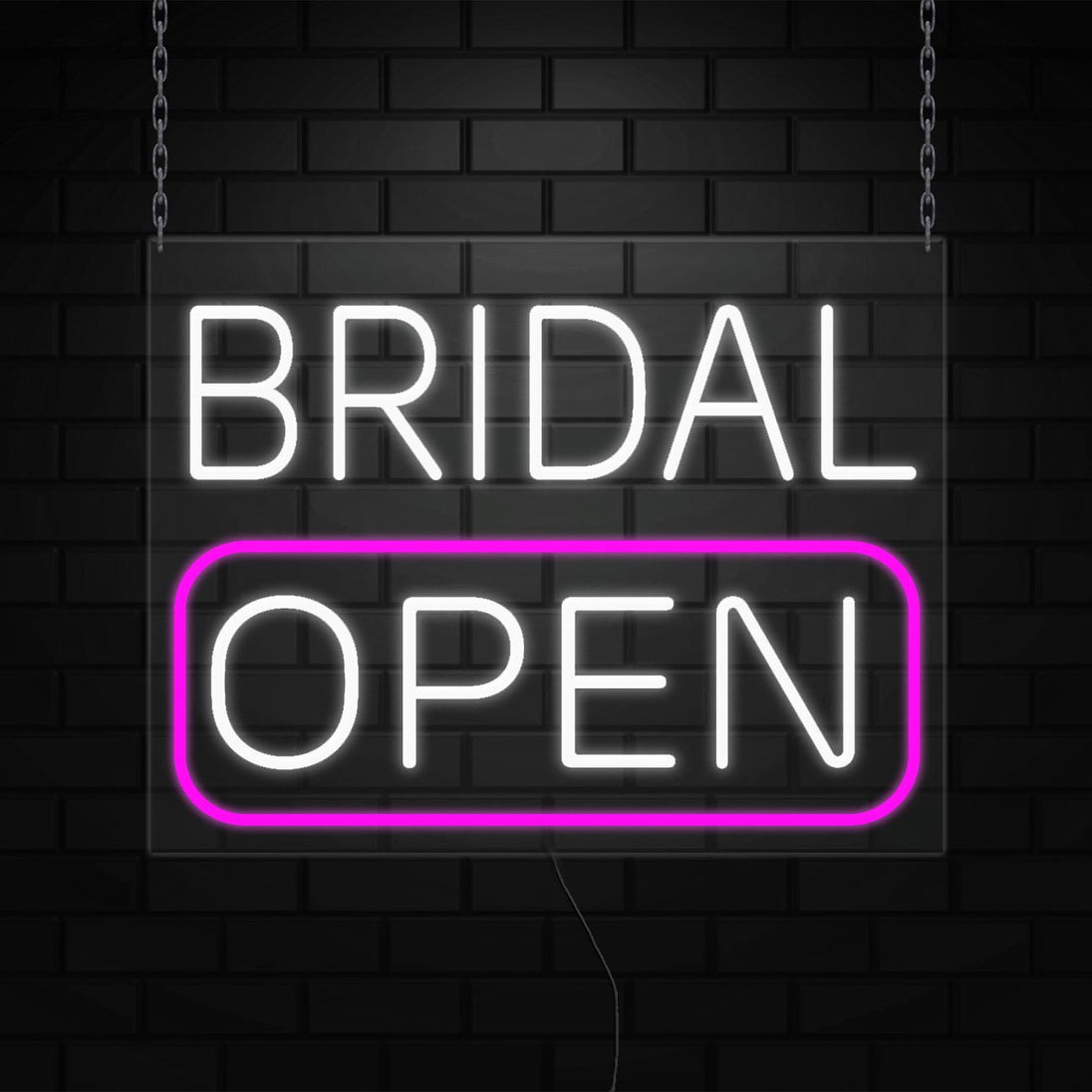 Bridal Open Neon Sign for Retail Displays | LED Flex Neon | 31"W x 24"H x 1"D