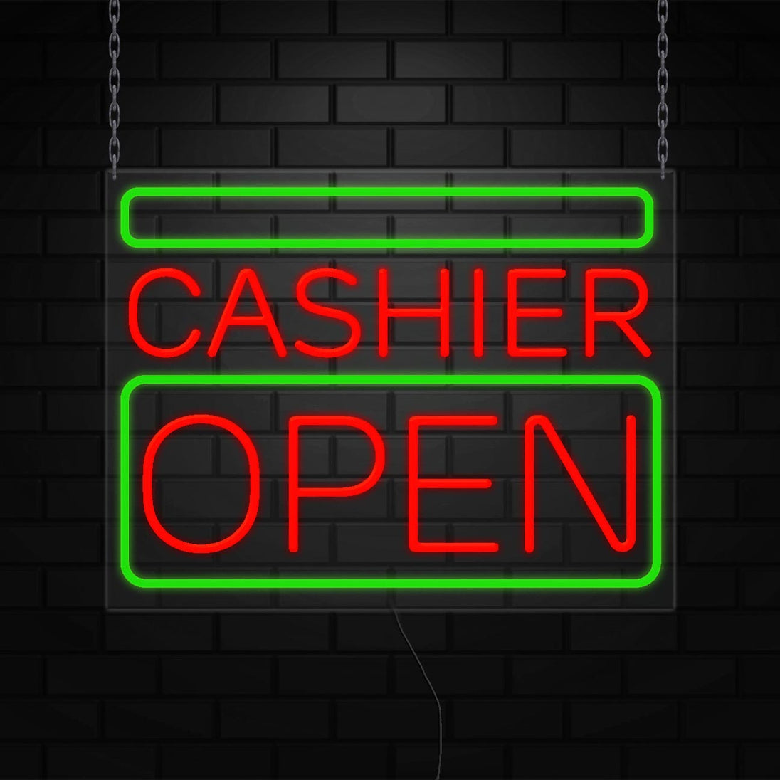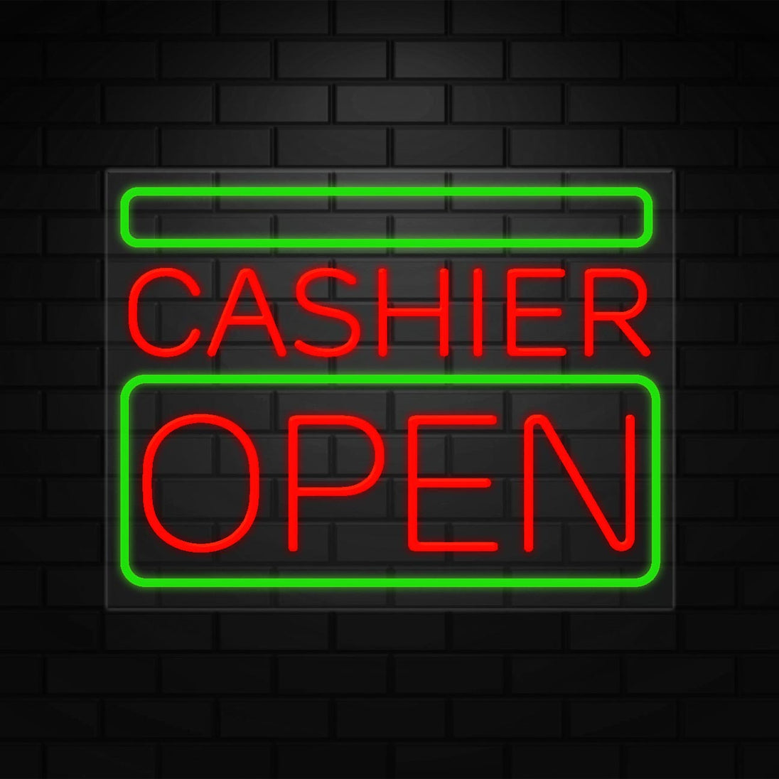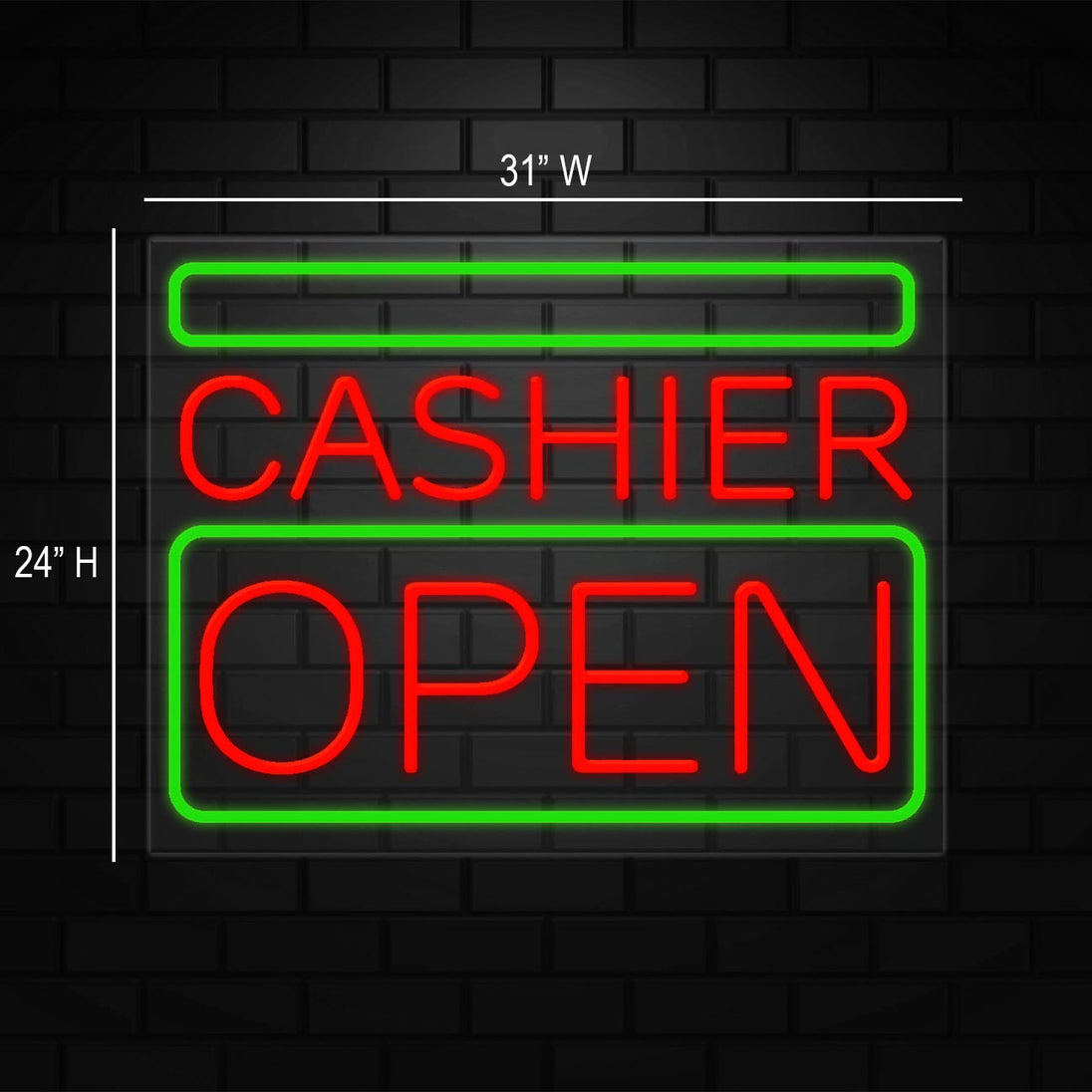 Cashier Open Neon Sign for Retail Displays | LED Flex Neon | 31"W x 24"H x 1"D