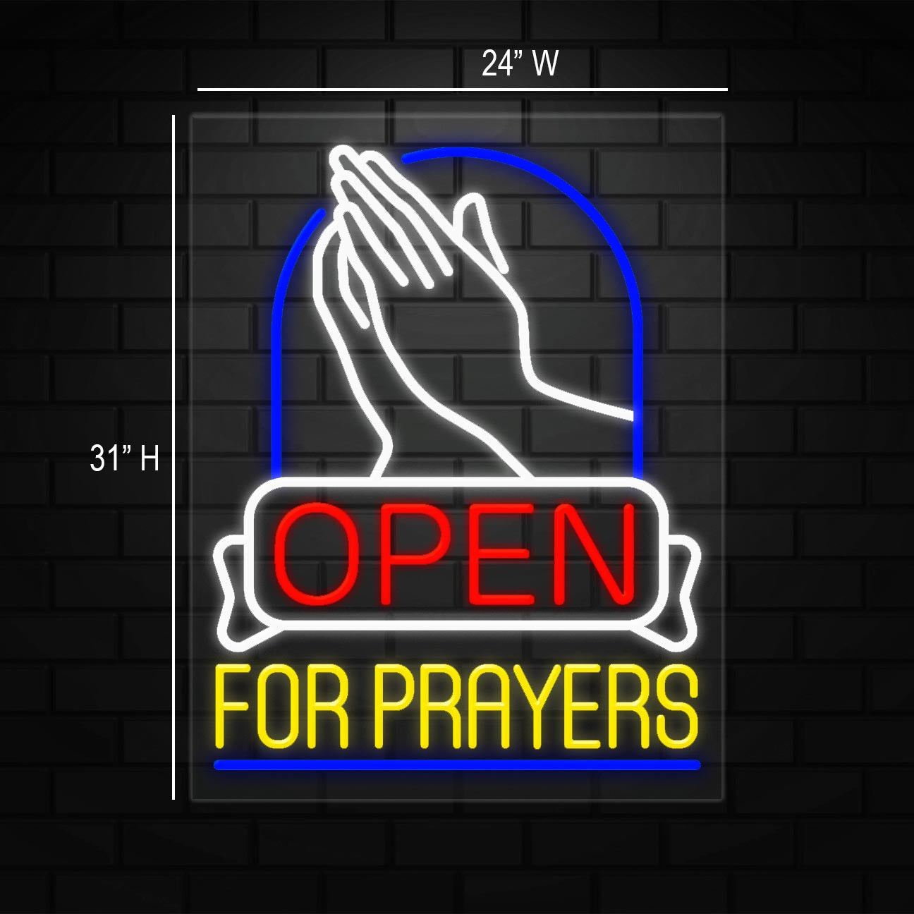 Open for Prayer Neon Sign for Retail Display | LED Flex Neon | 24"W x 31"H x 1"D