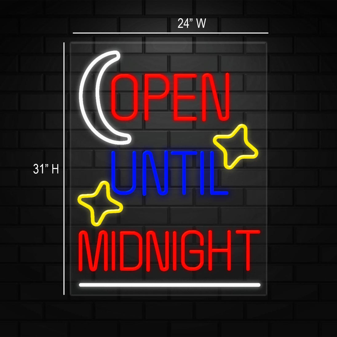 Open Until Midnight Sign for Retail Displays | LED Flex Neon | 24"W x 31"H x 1"D