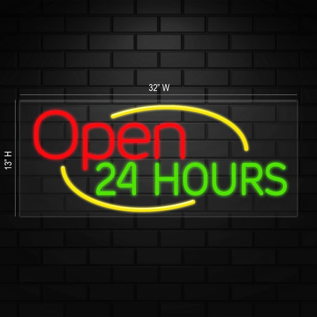 Open 24 Hours Neon Sign for Retail Displays | LED Flex Neon |32"W x 13"H x 1"D
