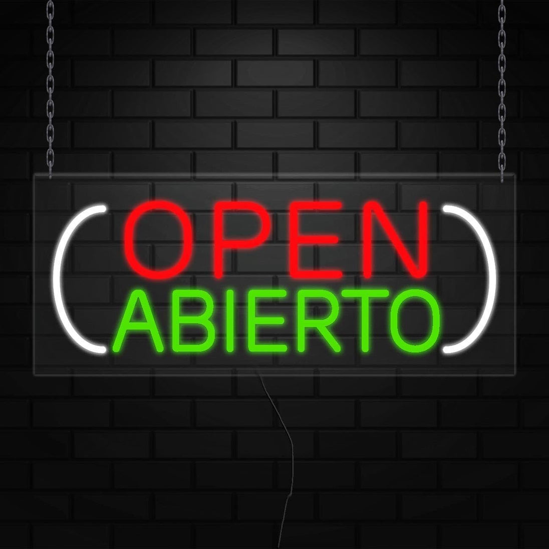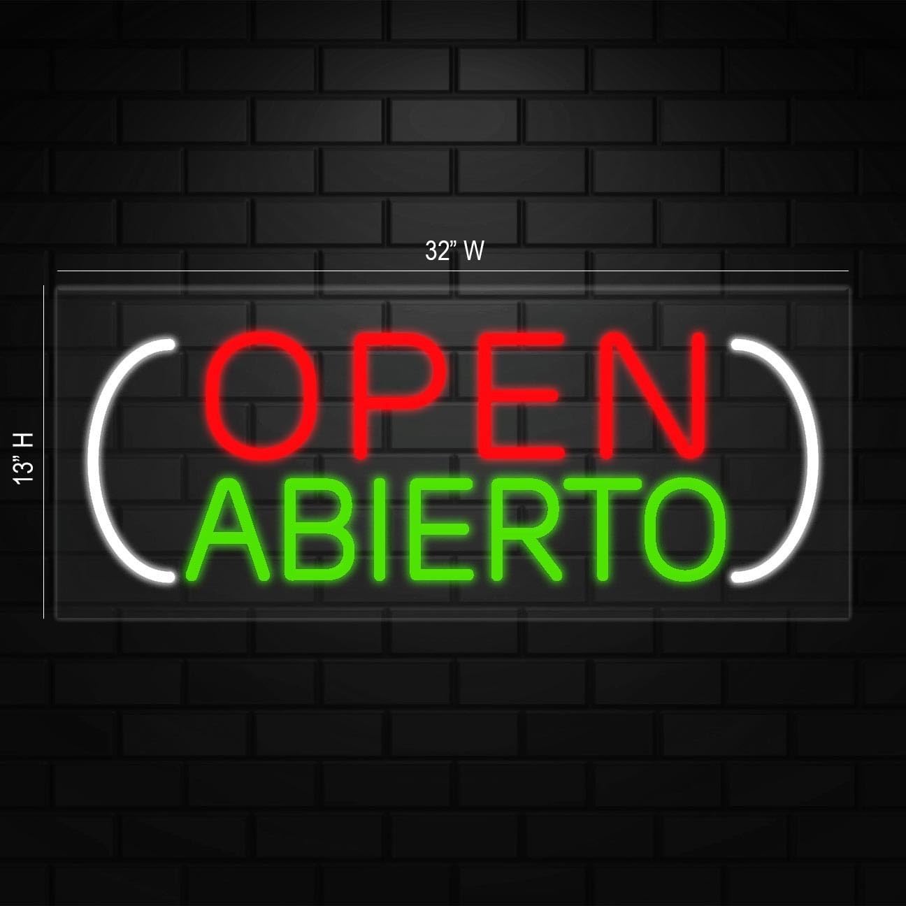 Open Abierto Neon Sign for Retail Displays | LED Flex Neon | 32"W x 13"H x 1"D