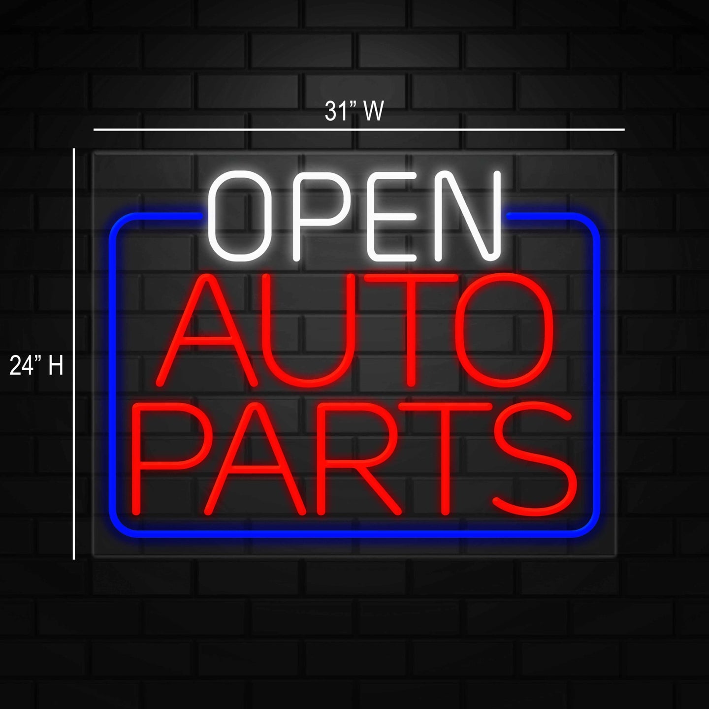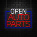 Open Auto Parts Neon Sign for Retail Displays |LED Flex Neon | 31"W x 24"H x 1"D