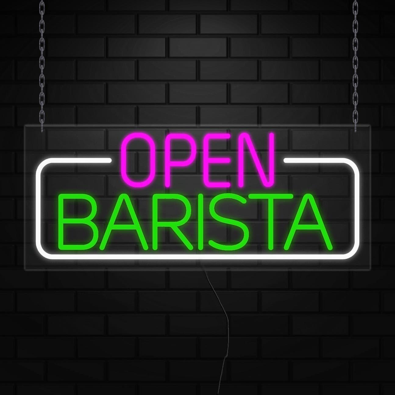 Open Barista Neon Sign for Retail Displays | LED Flex Neon | 32"W x 13"H x 1"D