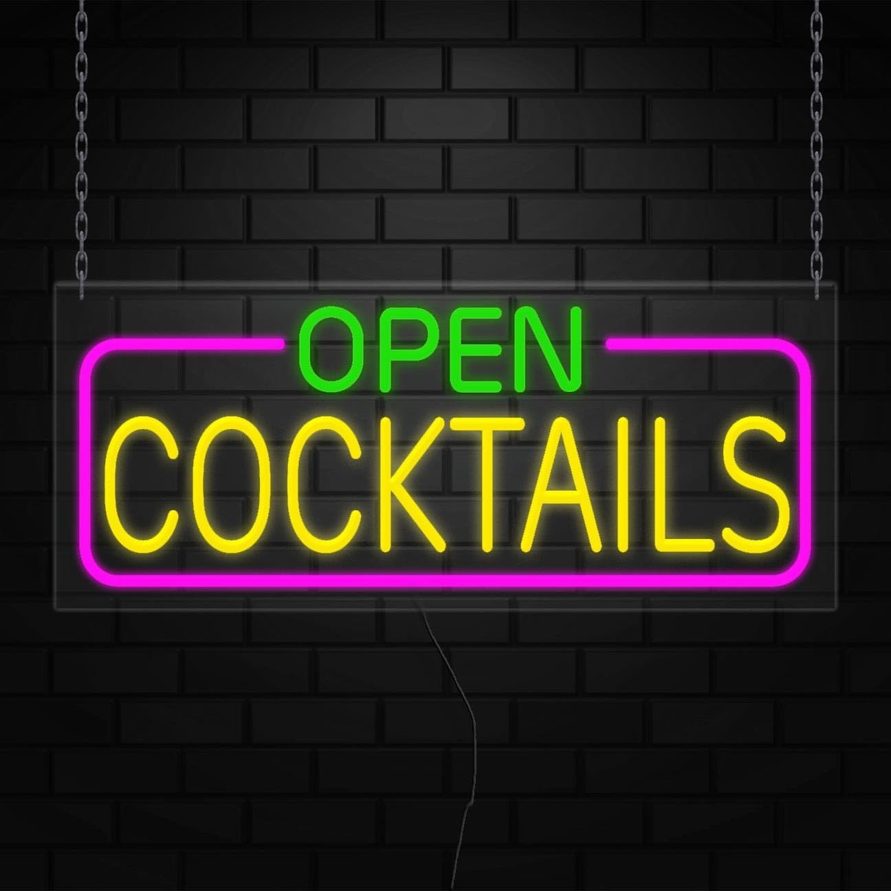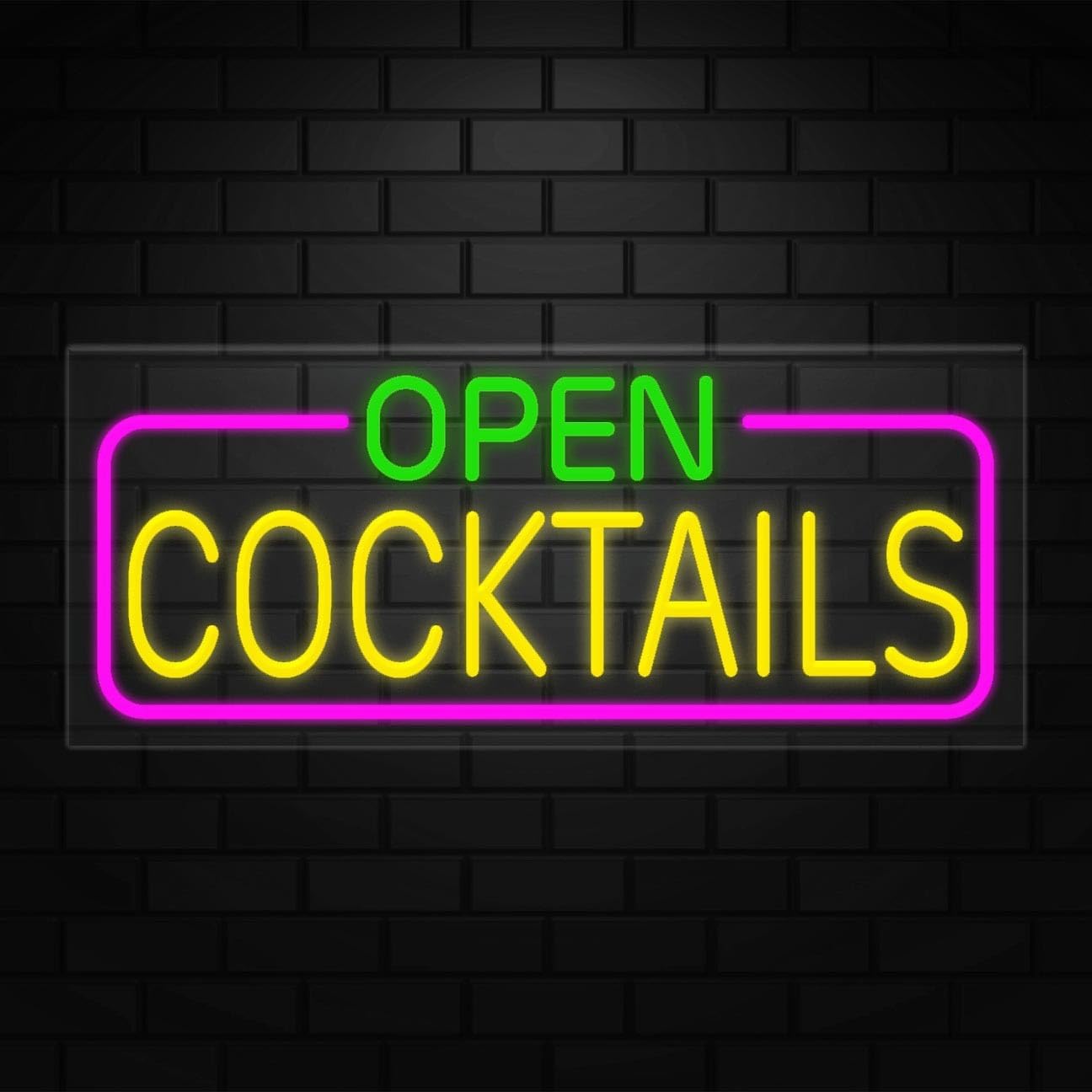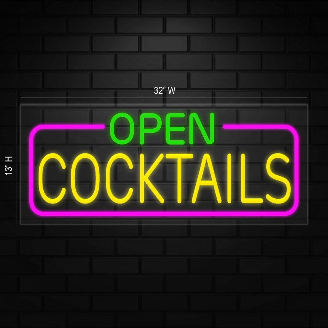 Open Cocktails Neon Sign for Retail Displays | LED Flex Neon | 32"W x 13"H x 1"D