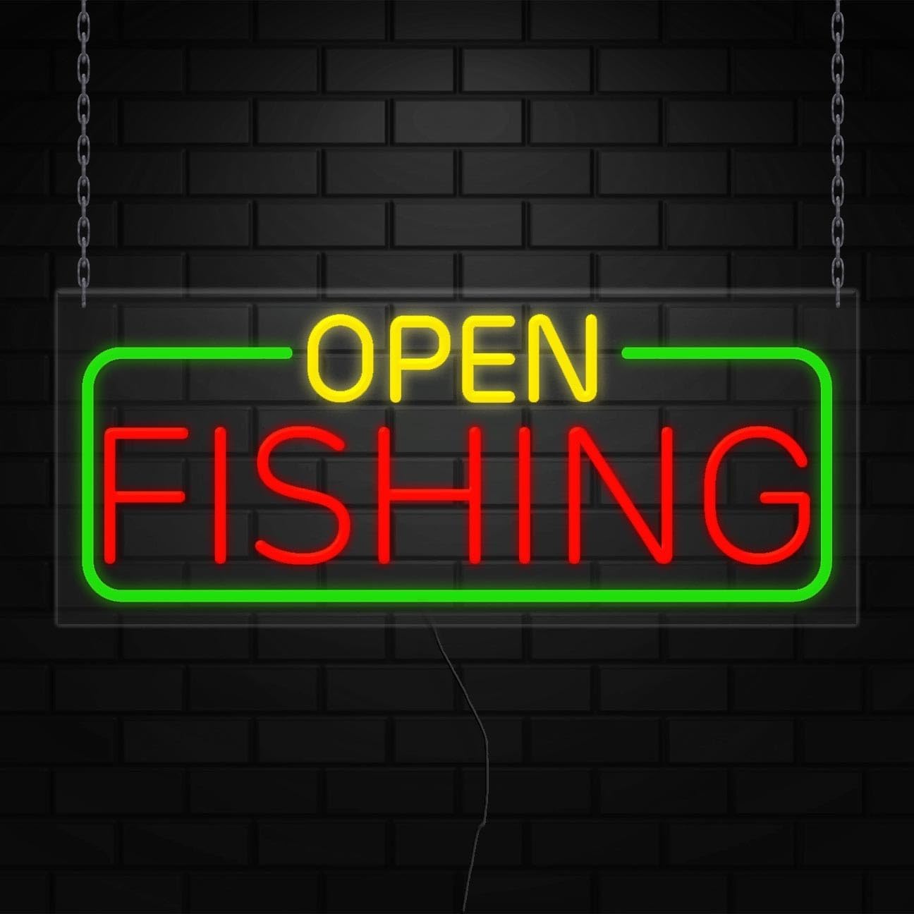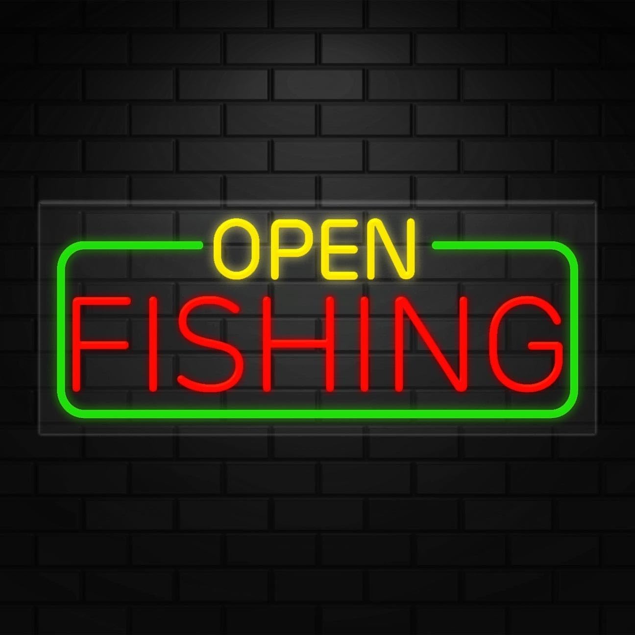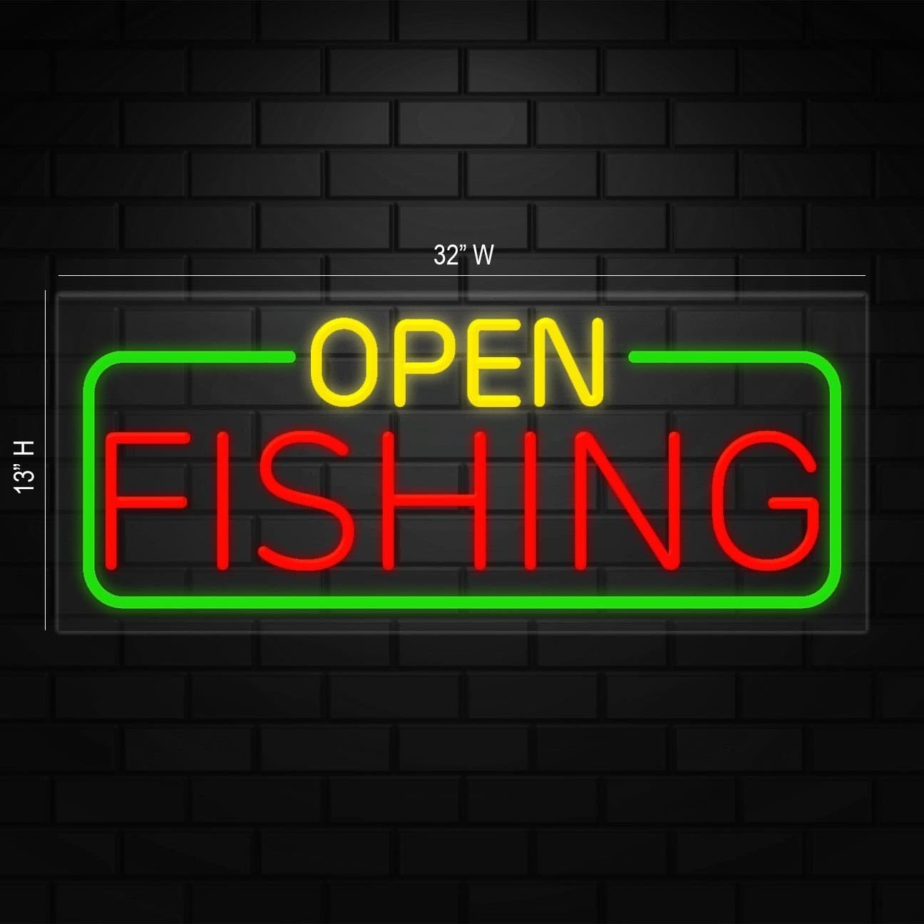 Open Fishing Neon Sign for Retail Displays | LED Flex Neon | 32"W x 13"H x 1"D