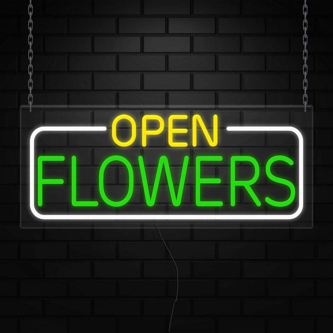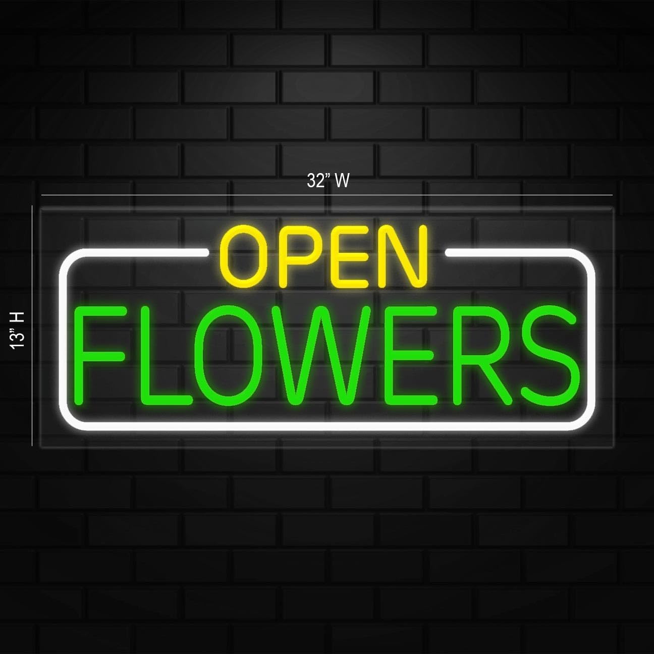 Open Flowers Neon Sign for Retail Displays | LED Flex Neon | 32"W x 13"H x 1"D