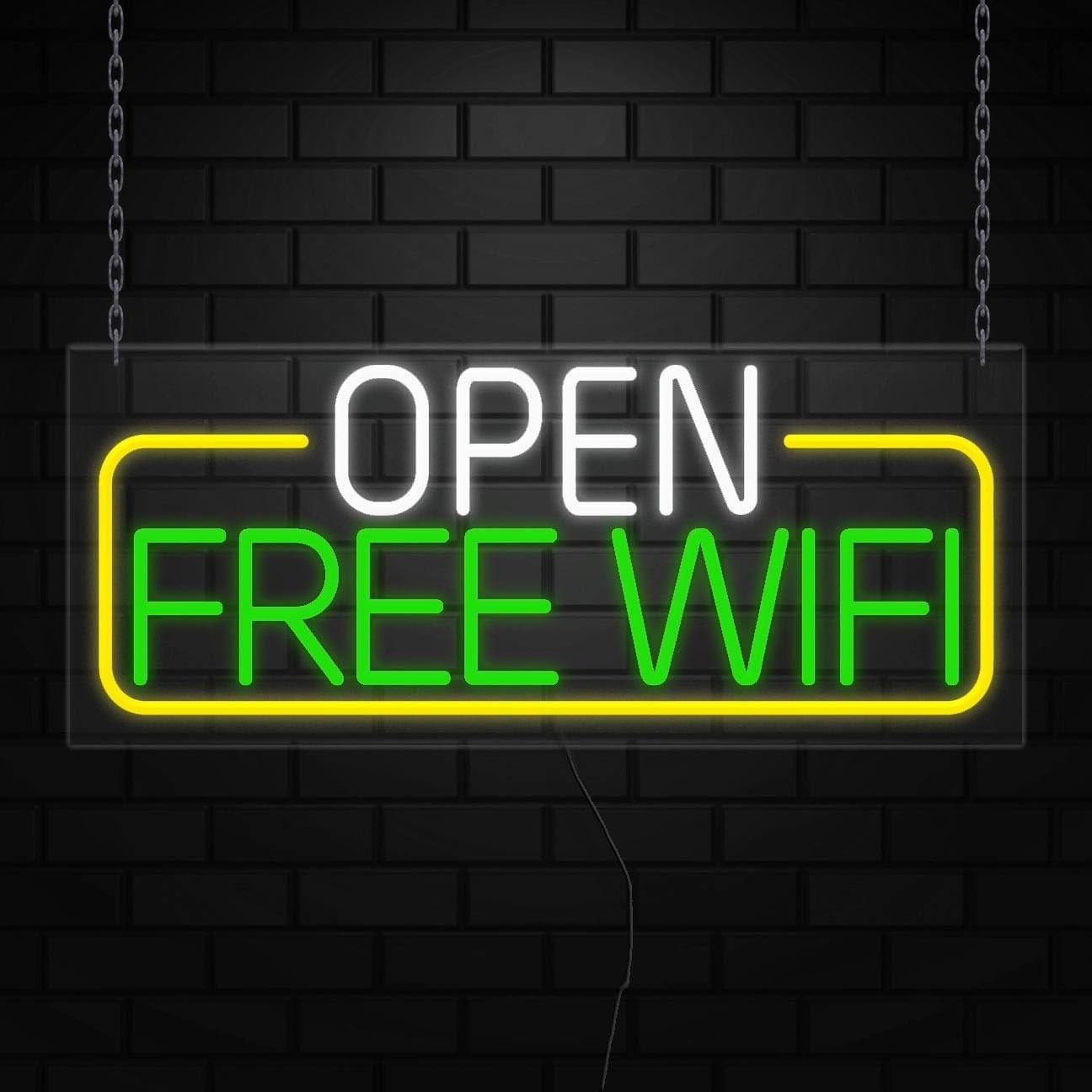 Open Free Wifi Neon Sign for Retail Displays | LED Flex Neon | 32"W x 13"H x 1"D