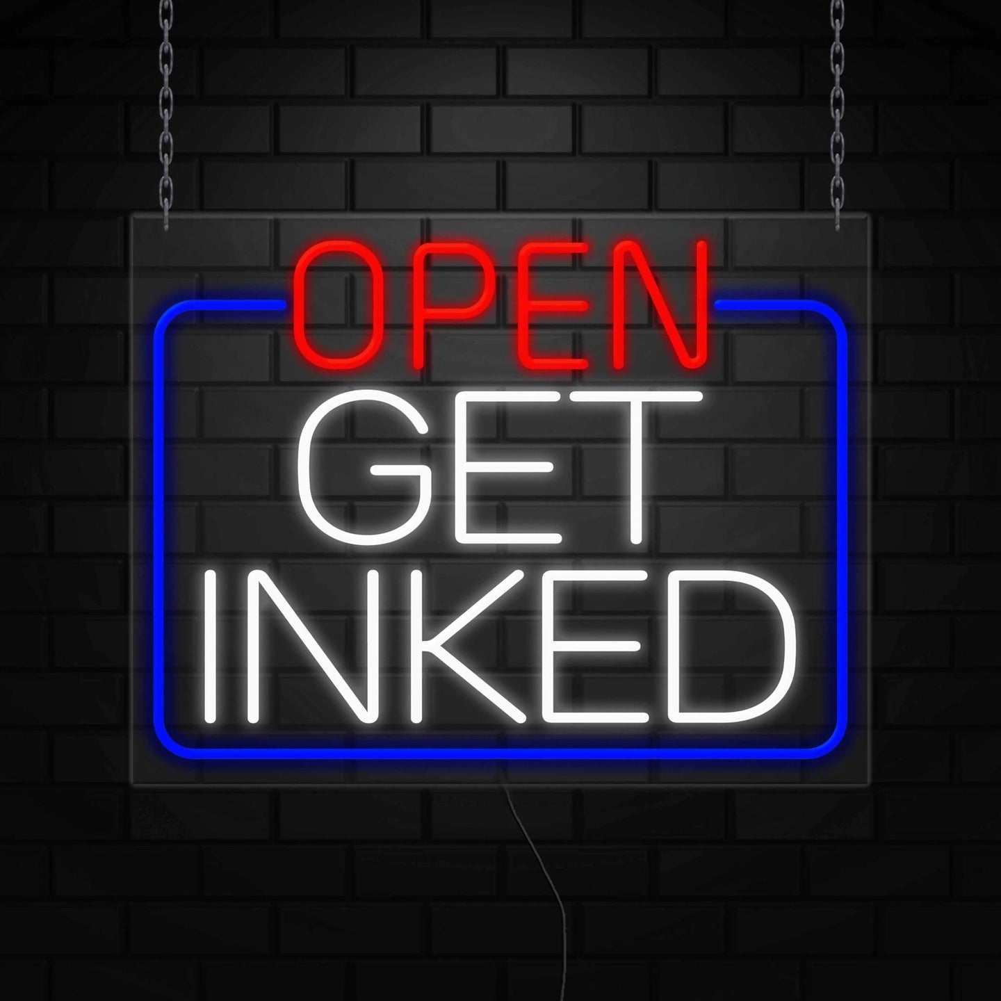 Open Get Inked Neon Sign for Retail Displays | LED Flex Neon | 31"W x 24"H x 1"D