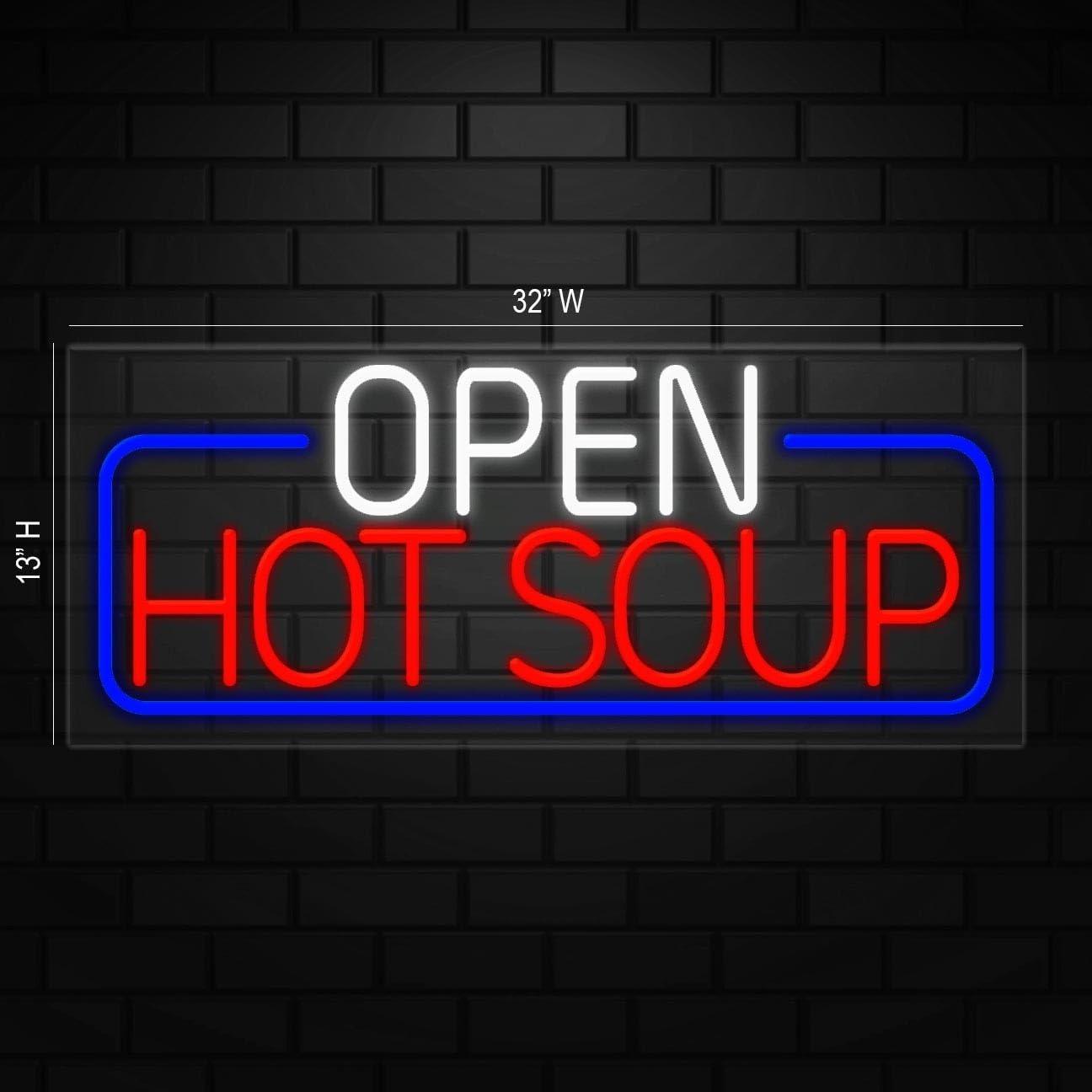 Open Hot Soup Neon Sign for Retail Displays | LED Flex Neon | 32"W x 13"H x 1"D