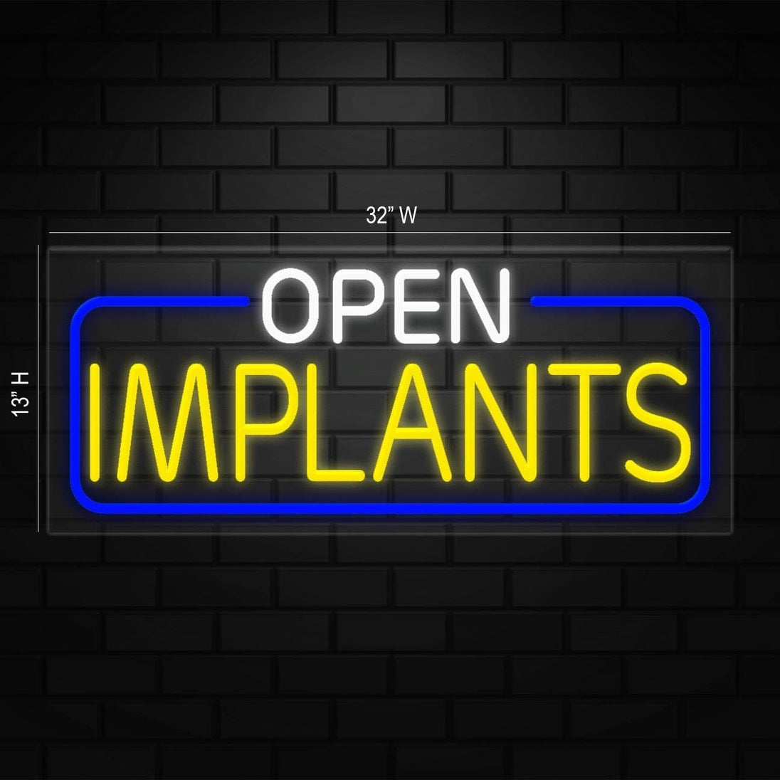 Open Implants Neon Sign for Retail Displays | LED Flex Neon | 32"W x 13"H x 1"D