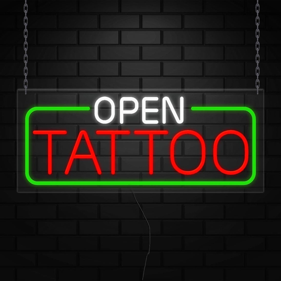 Open Tattoo Neon Sign for Retail Displays | LED Flex Neon | 32"W x 13"H x 1"D