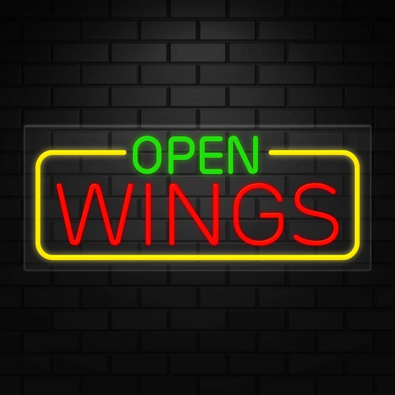- Sign is mounted on acrylic clear backing and comes with power adapter, stand offs and hanging kits
