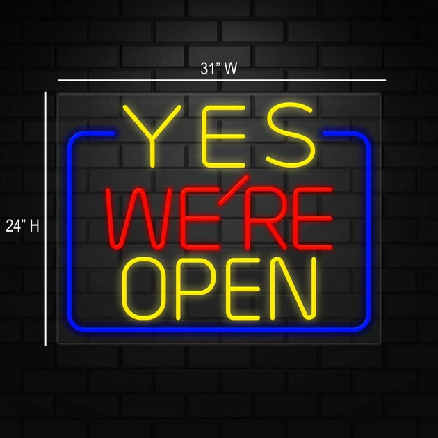 Yes We're Open Neon Sign for Retail Displays |LED Flex Neon | 31"W x 24"H x 1"D