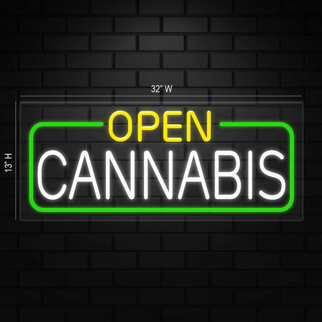 Open Cannabis Neon Sign for Retail Displays | LED Flex Neon | 32"W x 13"H x 1"D