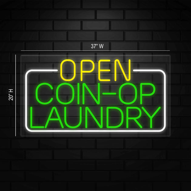Open Coin-OP Laundry Sign for Retail Displays |LED Flex Neon | 37"W x 20"H x 1"D