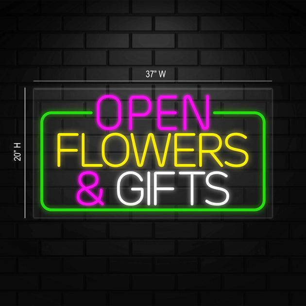 Open Flowers & Gifts Sign for Retail Displays |LED Flex Neon | 37"W x 20"H x 1"D