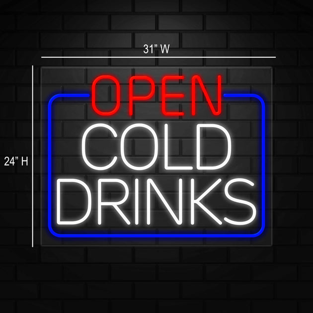 Open Cold Drinks Sign for Retail Displays | LED Flex Neon | 31"W x 24"H x 1"D